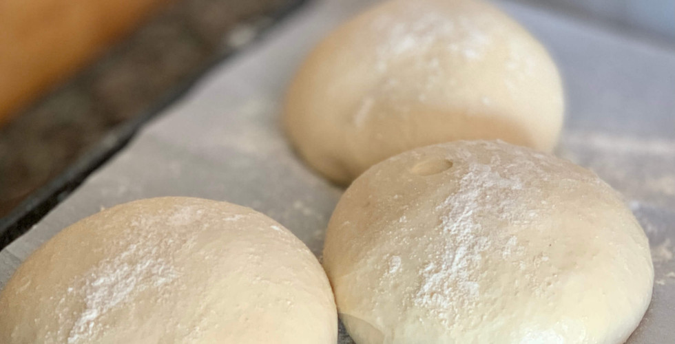 אחרי ההתפחה השניה היו לי כדורי בצק ענקיים ושמנמנים שהופתעתי מכמה מהר הם גדלו, פתחתי בצק אחד לעיגול גדול של פיצה